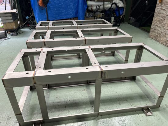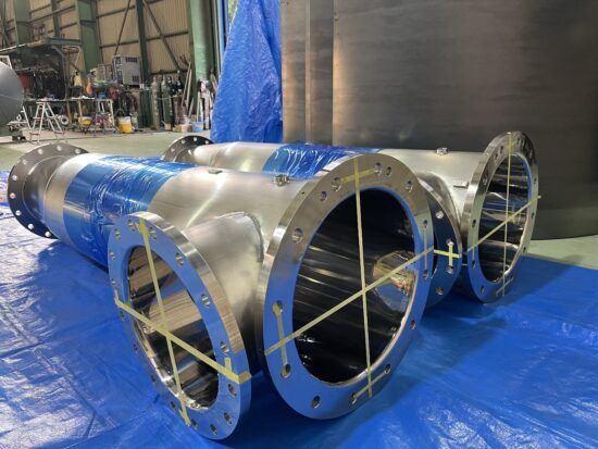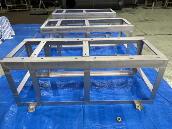 桜が咲き始め、穏やかな気候に春らしさを感じられますね! 写真の製品は、大型紫外線殺菌装置になります。 内面は#600、外面はヘアーライン仕上げとなっており、仕上がりやキズに細心の注意を払いながら作業しています。 この後は養生を行い、出荷準備へと進めてまいります。